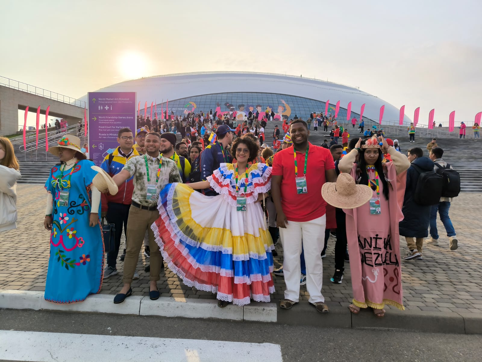 فیسٹول میں شریک نوجوانوں نے اپنے اپنے ملکوں کے جھنڈے اٹھا رکھے تھے، ان میں سے کچھ کے پاس اپنے ملک کے جھنڈے کے علاوہ روس کا جھنڈا بھی تھا۔ کچھ نے روسی زبان میں گانے گائے، جیسے کہ “کاتیوشا” اور “فارورڈ روس” اور اس کے ساتھ ساتھ کے اپنی مادری زبانوں میں گانے اور رقص پیش کئے۔