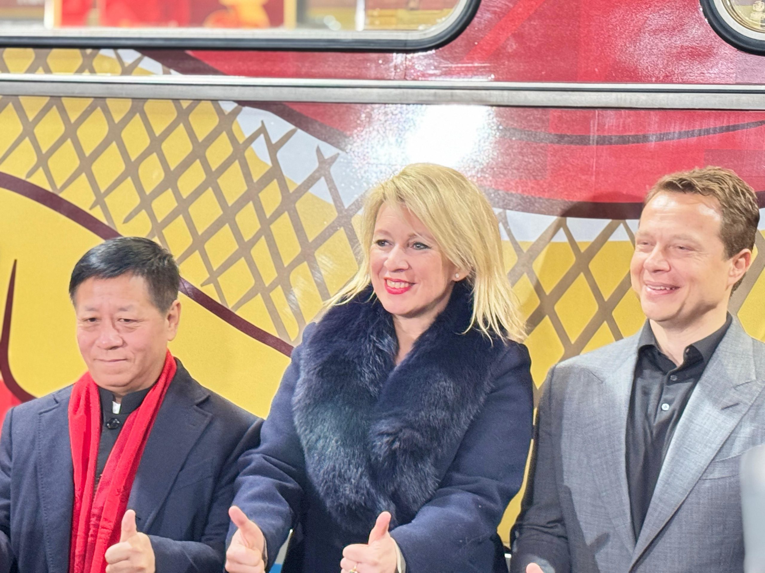 لائن پر جانے سے پہلے روسی وزارت خارجہ کی سرکاری نمائندہ ماریا زاخارووا، ماسکو کے ڈپٹی میئر برائے ٹرانسپورٹ اینڈ انڈسٹری میکسم لکسوتو اور ماسکو میں عوامی جمہوریہ چین کے سفیر ژانگ ہنہوئی نے ٹرین کا معائنہ کیا، جبکہ اس موقع پر چیف ایڈیٹر صداۓ روس اشتیاق ہمدانی بھی موجود تھے.