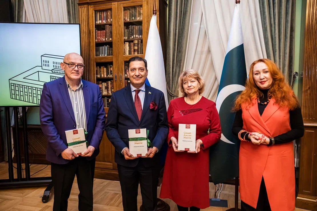 آل رشین سٹیٹ لائبریری فار فارن لٹریچر میں ایک شاندار تقریب کا اہتمام کیا، جس میں اردو کے عظیم ادیب سعادت حسن منٹو کی 56 مختصر کہانیوں کی کتاب کی رونمائی کی گئی۔ یہ کتاب روسی زبان میں ترجمہ کی گئی تھی تاکہ روس میں اردو ادب کے حوالے سے آگاہی بڑھائی جا سکے اور دونوں ممالک کے ثقافتی تعلقات کو مزید مستحکم کیا جا سکے۔ اس ایونٹ میں روس کے مختلف شعبوں سے تعلق رکھنے والے اہم افراد نے شرکت کی، جن میں سفارت کار، ماہرین تعلیم، فنکار، تھیٹر کے نمائندے، اور میڈیا کے لوگ شامل تھے۔ اس تقریب کا مقصد نہ صرف سعادت حسن منٹو کی ادبی خدمات کو خراج تحسین پیش کرنا تھا بلکہ پاکستان اور روس کے درمیان ثقافتی تعلقات کی اہمیت کو اجاگر کرنا تھا۔